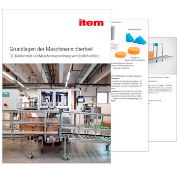 Eine CE-Kennzeichnung stellt item aus, wenn item ein Produkt in Verkehr bringt, das direkt von einer europäischen Richtlinie betroffen ist. Außerdem bekommen Sie eine CE-Kennzeichnung von item, wenn unser Konstruktionsteam eine kundenspezifische Lösung entwickelt, die gezielt der Minimierung von Risiken eines definierten Anwendungszwecks dient. Dafür müssen Sie den Einsatzzweck und die damit verbundenen Gefährdungen beschreiben und dokumentieren. Auf diese Weise kann die Konstruktion technisch sowie sicherheitstechnisch darauf abgestimmt werden.